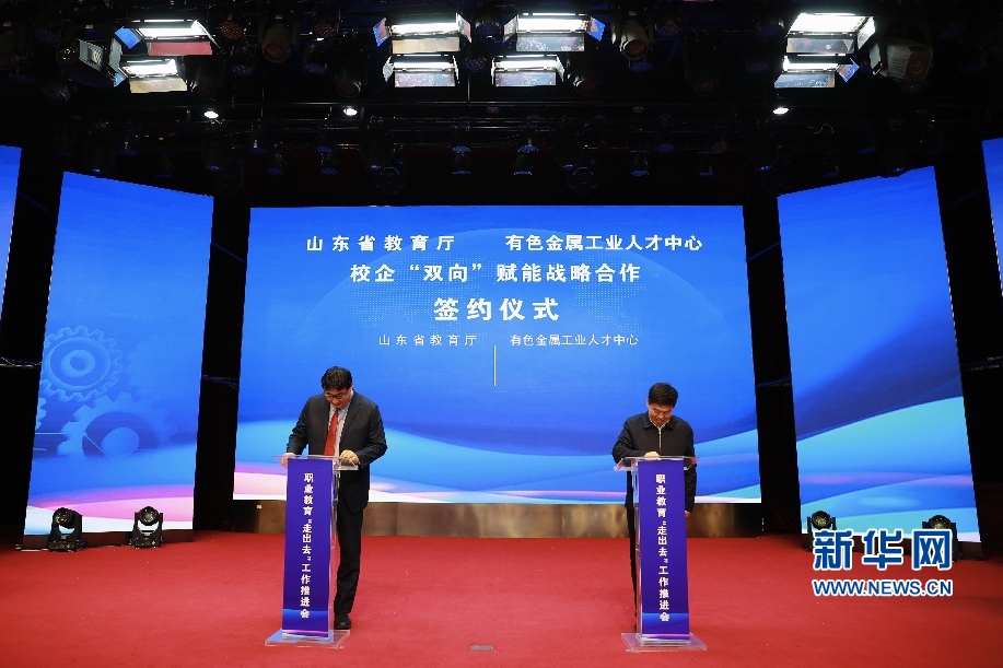 山东省教育厅、有色金属工业人才中心校企“双向”赋能战略合作签约仪式。新华网发 (张晓琪 摄)