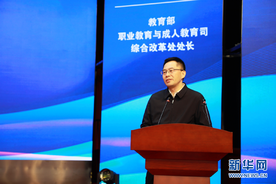 教育部职业教育与成人教育司综合改革处处长邬跃讲话。新华网发 (张晓琪 摄)