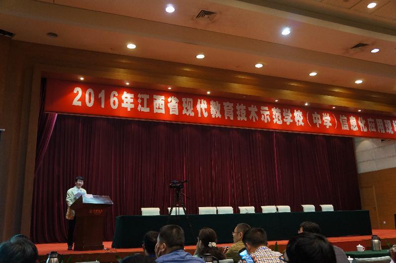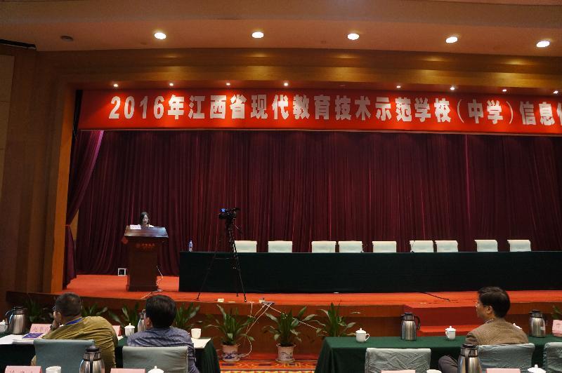 ?????? ? ?4月26日下午,江西省现代教育技术示范学校信息化应用现场会在江西饭店继续举行。江西省教育厅副厅长肖志华、江西省电教馆馆长张爱萍,以及来自全省的中学校长、各地市电教馆负责人、专家学者、部分教师代表,共300余人出席会议。学川科技示范校南昌大学附属中学作为全省信息化应用典范,被选为唯一的高中代表在大会发言。