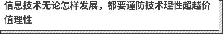 最近我们经常提一个词——资本凶猛,实际上现在技术也很凶猛,当资本和技术叠加在一起时就更加凶猛。目前这种情况在全球都呈现出来。信息技术在我国教育领域的应用存在两方面问题:一方面是利用不足,例如在西部等地区尽管资金和设备投入很多,但使用效率不高,存在浪费现象;另一方面是在某些发达地区存在信息技术使用过度的现象,或者更准确地说是使用方向存在偏差,例如使用大数据技术评价教师,增加了教师的负担和压力,教师很抵触。我们必须思考,技术到底是解放人、发展人的手段,还是束缚人、奴役人的手段?在技术理性与价值理性的关系上,技术理性永远要服从于价值理性。