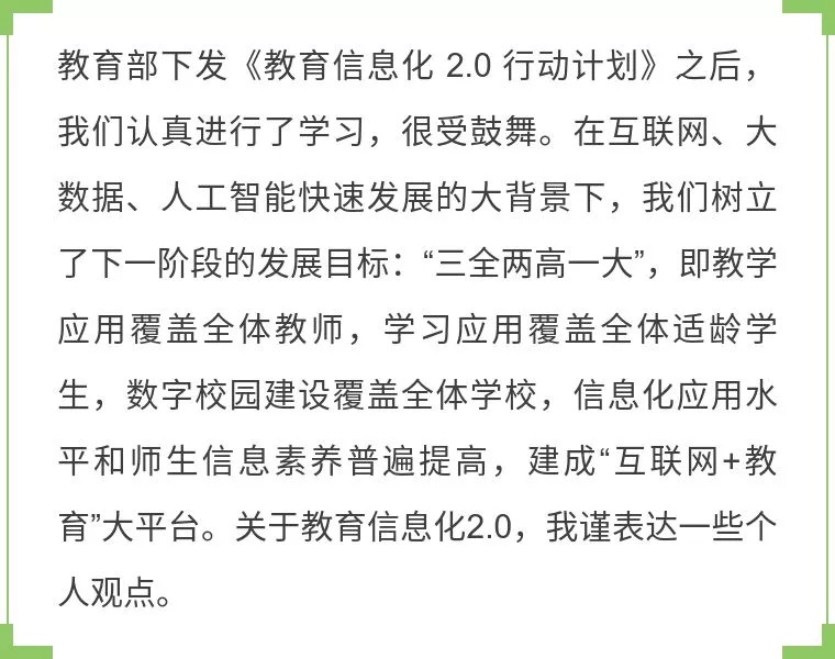 每个人在生命中要处理三方面的关系:人与自然的关系、人与社会的关系、人与自己的关系。现在信息化来了,还涉及人与网络的关系。现在出现了一个什么问题呢?孩子宅在虚拟空间里、宅在家里,不和自然接触,不和社会接触,甚至也不真诚地面对自己的灵魂,沉溺于各种网络娱乐当中,迷失了自己。技术手段应该让人回归本我。不要过度使用技术,过度使用会引发问题。对教师的评价也是如此。利用大数据评价教师,教师干的所有工作都要留有痕迹,这是很可怕的事情。当一个人没有安全感,没有一定自由度的时候,他是不可能有创新精神的。当前在我国教育领域,评价是被过度使用的,特别是利用大数据对教师进行评价在一些地区用得尤其过度。信息技术是非常好的工具,这个好工具我们要把它用好,要注意使用中的合理边界。